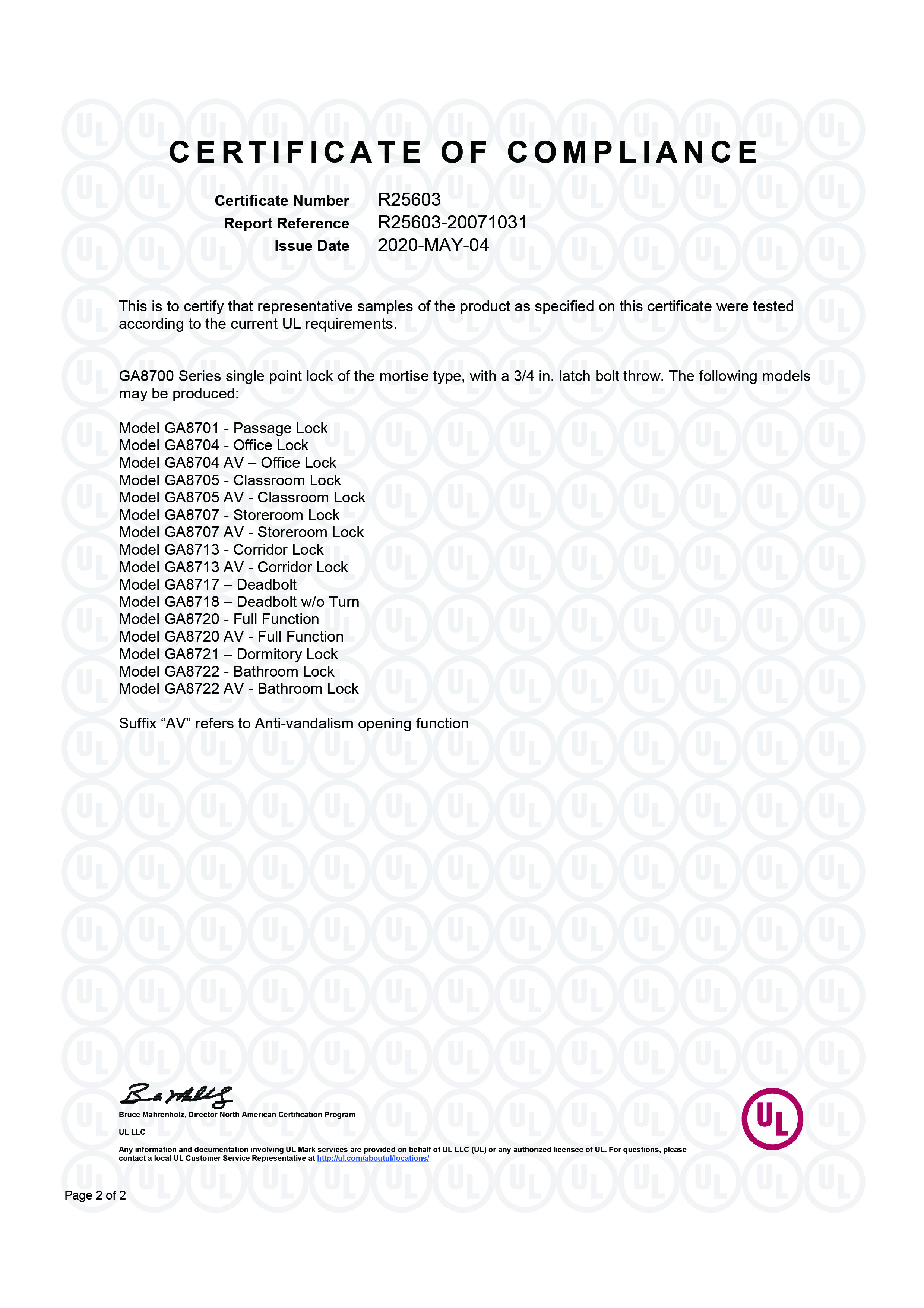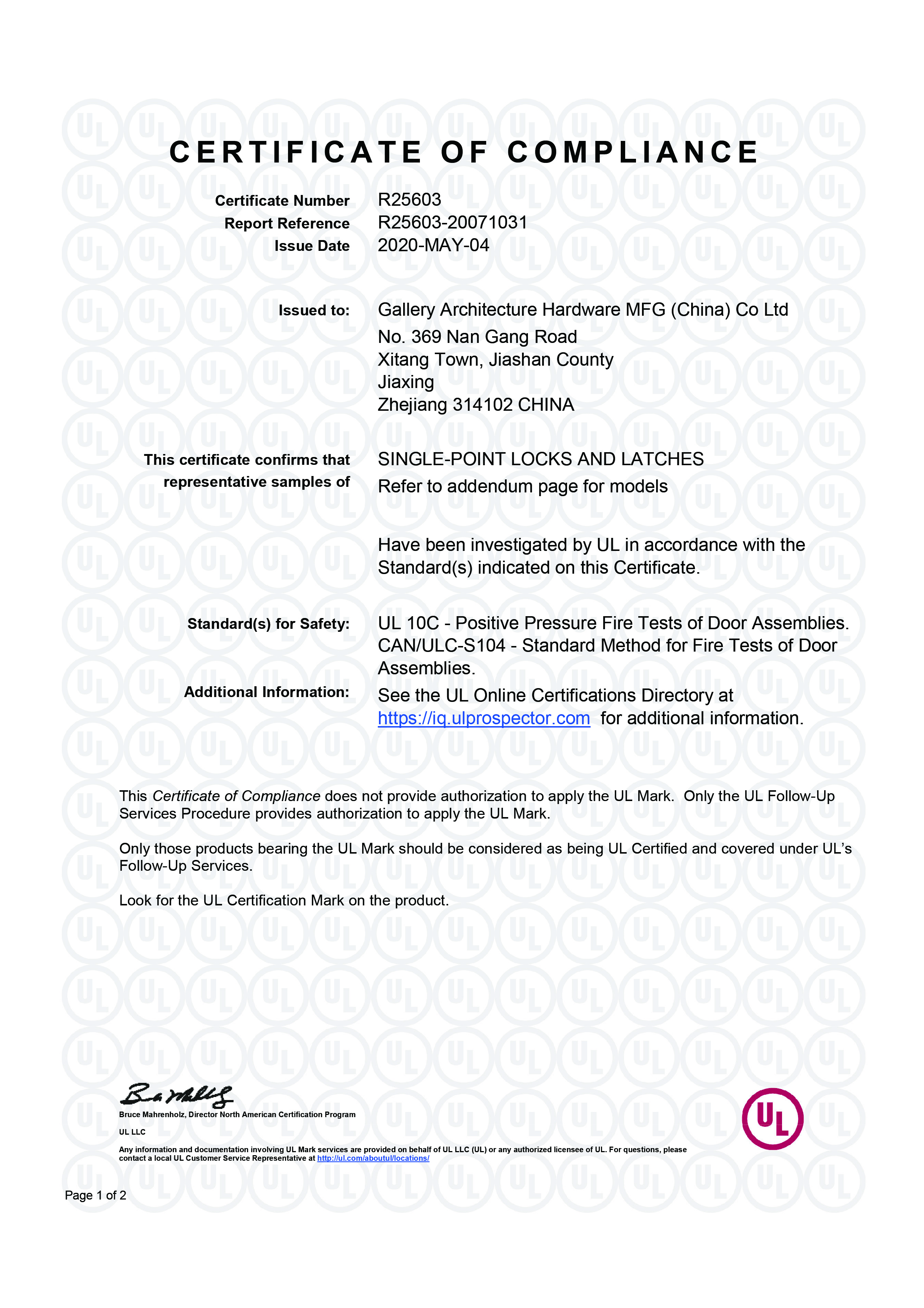 浙江堅(jiān)迪五金制造有限公司始建于 1995 年。自 2003 開始,公司致力于高標(biāo)準(zhǔn)商業(yè)鎖的研發(fā)工作,并于 2006 及 2007 年,8700 插芯鎖系列獲得美國國家標(biāo)準(zhǔn) ANSI A 156.13-2005 一級(jí)、ANSI A 156.2-2003 二級(jí)和美國 UL 10C3 小時(shí)防火測(cè)試認(rèn)證。自 1998 年以來,公司不斷提升產(chǎn)品和客戶服務(wù)品質(zhì),并獲得了 ISO 9001 的認(rèn)證。